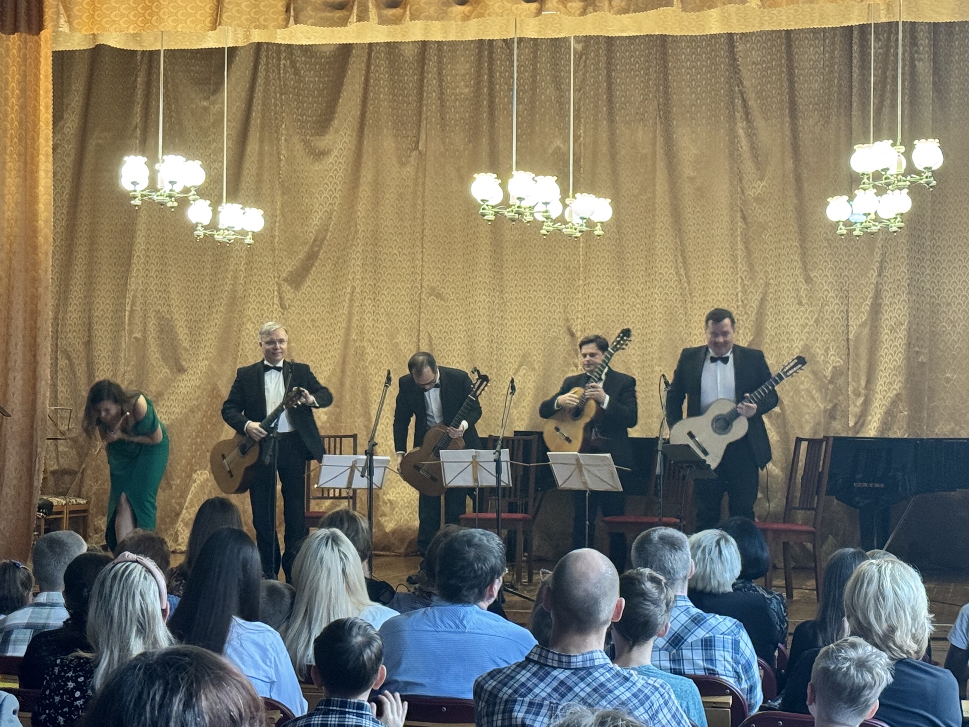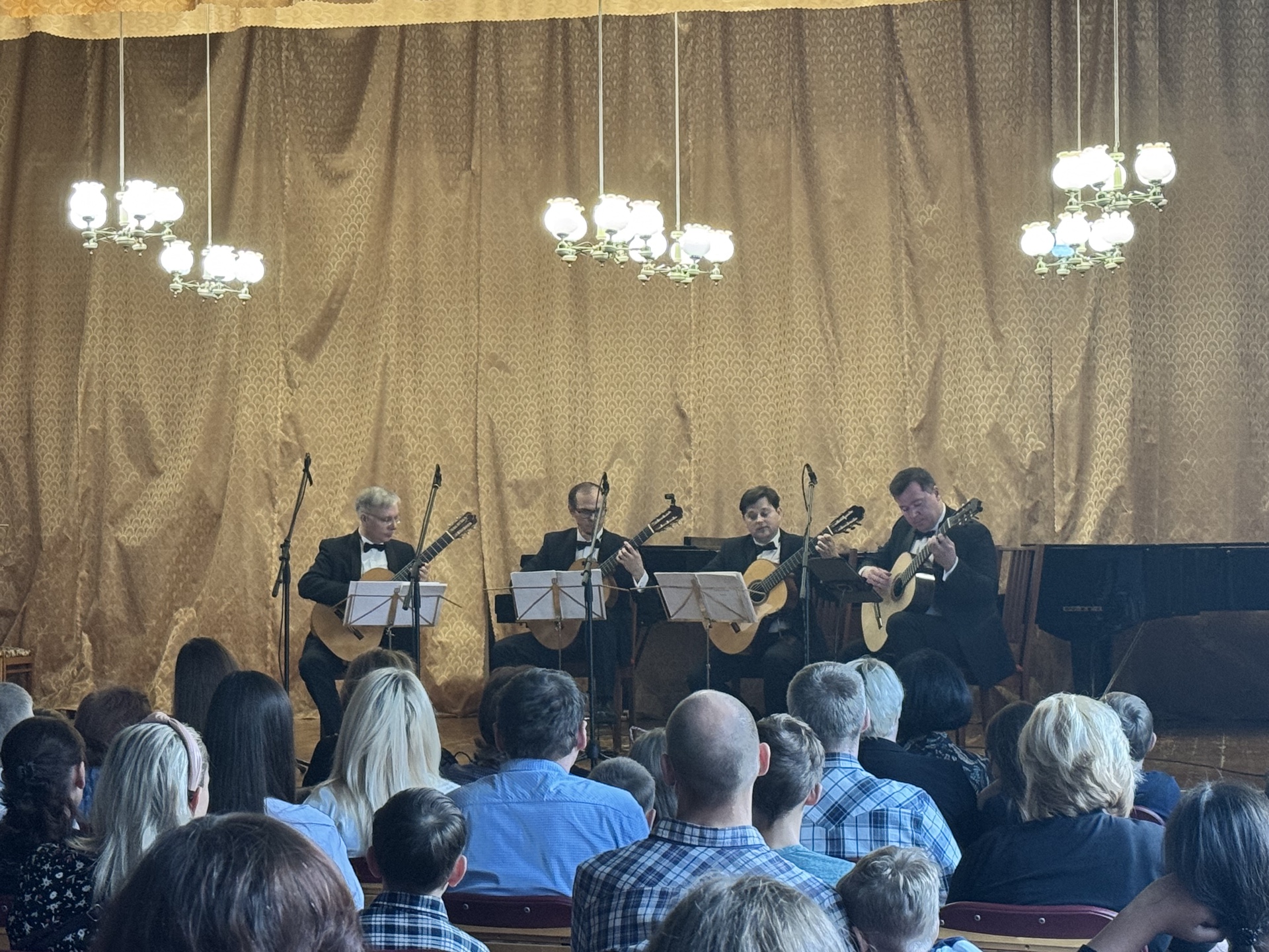 В рамках проекта «Академия музыки» в прошлую субботу 27 сентября в нашей школе состоялись концерты Лауреата международных конкурсов, солистки Московской Филармонии – Ирины Стачинской (флейта) и Гитарного квартета имени Фраучи – Дмитрий Мурин, Сергей Урюпин, Евгений Номеровский и Дмитрий Татаркин.
